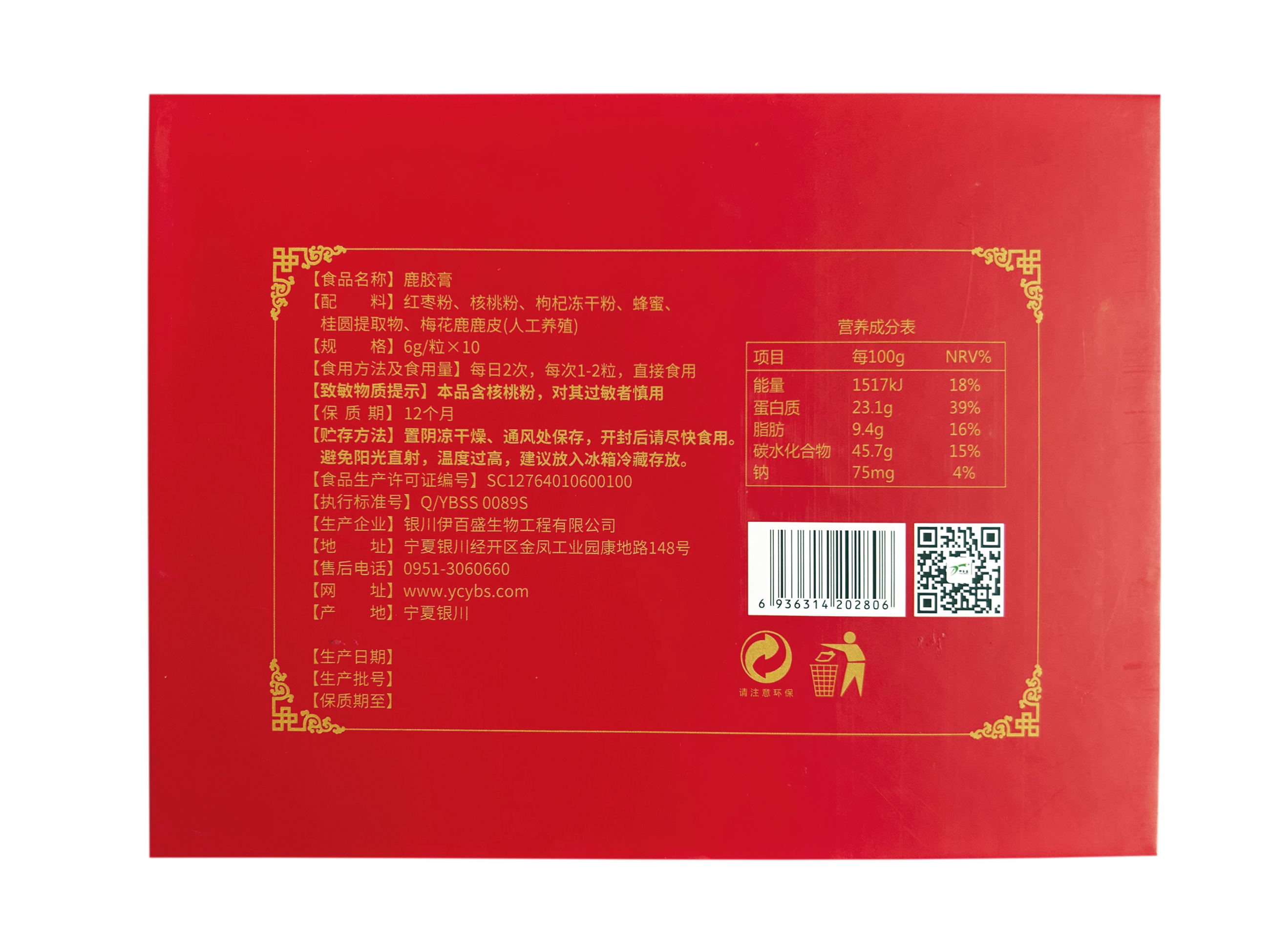 【配料】紅棗粉、核桃粉、枸杞凍干粉、蜂蜜、配桂圓提取物、梅花鹿鹿皮(人工養(yǎng)殖)格】6g/粒x10規(guī)