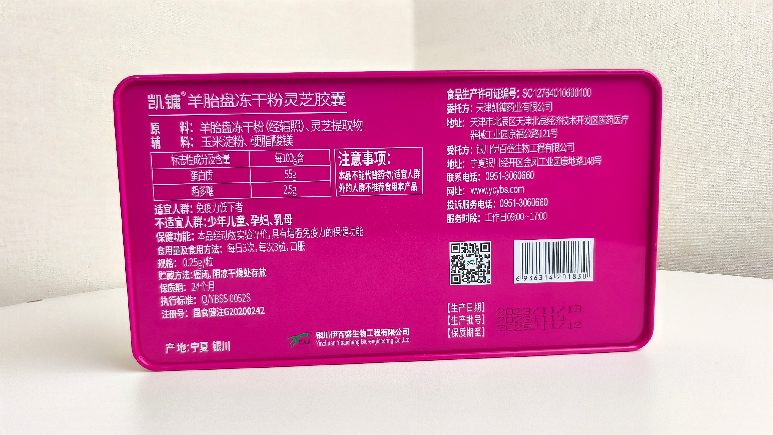 【原料】羊胎盤凍干粉(經(jīng)輻照)、靈芝提取物